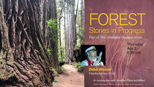 5:30 - 7:00 pmKrannert Art Museum, 500 E. Peabody Dr., ChampaignListen to a series of short readings from artist and Art & Design faculty member, Deke Weaver, followed by a short Q & A and informal reception in the "Another Place: Storymaking the Entangled Prairie" exhibition. Part of “The Unreliable Bestiary” series. *Parking nearby is free after 5 pm.*