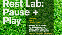 11:00 am - 12:00 pmKrannert Art Museum, 500 E. Peabody Dr., ChampaignJoin us for Pause + Play held in conjunction with Krannert Art Museum’s Rest Lab 8: Greenspace exhibition. Kids (ages 4–8) will dive into playful, drop-off art activities, while their caregivers get a guided tour exploring the museum's galleries and artworks on view. The program balances restorative pause with playful engagement, offering parallel experiences that nurture