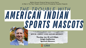 5:30 pm 1/22/2026Knight Auditorium, Spurlock Museum, 600 S. Gregory, Urbana, ILAttend a lecture by Joseph P. Gone, a member of the Aaniiih-Gros Ventre Tribal Nation of Montana and the Faculty Director of the Harvard University Native American Program, in the Mellon Sawyer Seminar Spring Lecture Series "At Risk U: The Past, Present, and Future of Academic Freedom."