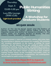 12:00 - 1:30 pm 9/5/2024Lucy Ellis Lounge, 1018 Literatures, Cultures & Linguistics Building -