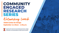 12:00 - 1:30 pm 9/11/2024Siebel Center for DesignJoin CSBS, the College of Education, and IHSI for the first event of the 2024-25 Community-Engaged Research Series. Connect with faculty and staff across campus involved in community-engaged research! Identify common goals and challenges in community-engaged research, learn from each other's experiences, find and share resources, and build your university and...