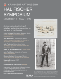 10:00 am - 6:00 pm 11/6/2021Krannert Art Museum, Lower Level, Auditorium (Room 62)A daylong, international gathering of scholars and artists responding to the work of gay conceptual photographer Hal Fischer, organized in conjunction with HAL FISCHER PHOTOGRAPHS: SERIALITY, SEXUALITY, SEMIOTICS, curated by Tim Dean.
