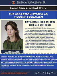 12:00 - 1:00 pm 11/9/2021This talk examines the twentieth-century regulatory framework tying humans to states, its historical formation, and how it has resulted in the callous politics of human sorting that we call the migration system.