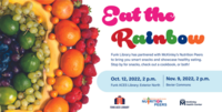 12:00 - 2:00 pm 10/5/2022Orange Room, Main LibraryLearn about the importance of eating "all the colors" of food, and get some healthy snacks! Run by the McKinley Health Center.