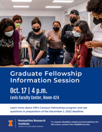4:00 pm 10/17/2022Levis Faculty Center, Room 424Graduate students: this is a great opportunity to learn more about HRI's Campus Fellowships program and to ask questions in preparation of the December 2, 2022 deadline.