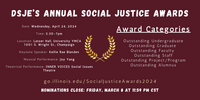 5:30 - 7:00 pm 4/24/2024University YMCA, 1001 S. Wright St., ChampaignThese awards seek to honor unsung members of the University of Illinois campus and community who have sought to address marginalization, oppression, and/or privilege in their communities.