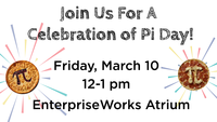 12:00 - 1:00 pm 3/10/2023EnterpriseWorks, 60 Hazelwood DriveJoin us in celebrating Pi Day early on Friday, March 10 from 12:00 - 1:00 PM. More details forthcoming.
