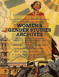 2:00 pm 12/3/2020The Slavic Reference Service is hosting an online open discussion on Women and Gender research resources in Russian, East European, and Eurasian Studies. We will highlight ongoing projects, bibliographies, and search tools. Participants are also encouraged to share tips and suggestions on collections, services, archives, and publishing. All are welcome!