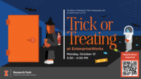 3:30 - 4:30 pm 10/31/2022EnterpriseWorks AtriumCome Trick or Treat around EnterpriseWorks! We will have lots of tricks and treats along with costumes and candy. All of the little goblins and ghouls are welcome to attend. Wear your best costume for an EnterpriseWorks night to remember!