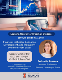 Julia Fonseca is an Assistant Professor of Finance at the University of Illinois at Urbana-Champaign. She received her PhD in Economics from Princeton University in 2019. Her research interests include household finance, development finance, and labor and finance. Her work focuses on topics like financial development, consumer financial markets, and inequality.