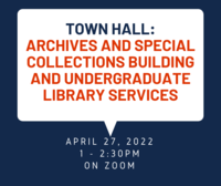 1:00 - 2:30 pm 4/27/2022Representatives from the Library will provide a status update on the Archives and Special Collections Building project and speak about the transition of Undergraduate Library services.
