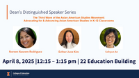 12:15 - 1:15 pm 4/8/202522 Education BuildingThe Third Wave of the Asian American Studies Movement: Advocating for & Advancing Asian American Studies in K-12 Classrooms
