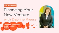 12:00 - 1:00 pm 1/20/2022Join us for an EIR Workshop with Daphne Preuss on Thursday, January 20 from 12:00-1:00 PM. This discussion will provide a high level overview of the various options for seed capital: SAFEs, convertible notes, crowdsourcing, traditional venture capital, and non-dilutive capital.