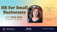 12:00 - 1:00 pm 2/15/2022EnterpriseWorks Room 130 + ZoomJoin us from 12:00-1:00 PM on Tuesday, February 15 to learn more about HR for small businesses with HR Expert in Residence, Kelly Gust. This will be a hybrid event, more details forthcoming.