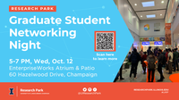 5:00 - 7:00 pm 10/12/2022EnterpriseWorks Atrium & Patio, 60 Hazelwood Drive, ChampaignJoin us on Wednesday, October 12 from 5-7 PM for Graduate Student Networking Night.