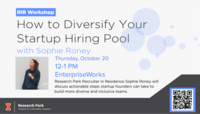 12:00 - 1:00 pm 10/20/2022EnterpriseWorks, 60 Hazelwood DriveJoin us on Thursday, October 20th from 12:00-1:00 PM for a Workshop with Sophie Roney on How to Diversify Your Start-Up Hiring Pool.