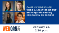 2:30 - 3:30 pm 1/24/2024The WIGG Analytics Group is building a community of best practices, creating quick-start guides, and providing other documentation to help you leverage your data. In a moderated panel discussion, members will talk about the history, current issues, the future of campus analytics and how to join the community. To participate in Q&A visit: https://go.illinois.edu/webcon-work