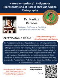 4:00 pm 4/7/2025Nature or Territory? Indigenous Representations of Forest Through Critical Cartography April 7th, 2025 | 4:00pm CST Virtual Meeting with Simultaneous Translation