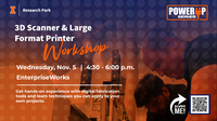 4:30 - 6:00 pm 11/5/2025EnterpriseWorks, 60 Hazelwood DriveJoin us on Wednesday, November 5 from 4:30 to 6 PM at EnterpriseWorks for the PowerUp Series: Creality RaptorX 3D Scanner & Large Format Printer Workshop!
