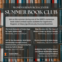 3:00 pm 7/12/2023616 E. Green St., Suite 202 Champaign, IL 61820This summer, the WRC will be hosting a variety of Book Clubs. Each book should be read before the meeting, and each club will only meet once. There are a limited amount of free copies for the participants. You must register for the book club in order to receive a copy of the book. Copies are first come first served. All book club meetings will take place at the WRC.