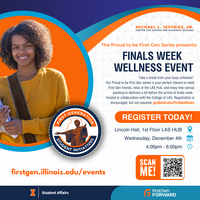 1:00 - 3:00 pm 12/6/2024Illini Union Courtyard CafeStop by for tips and a Finals self-care package.