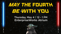 12:00 - 1:00 pm 5/4/2023EnterpriseWorks, 60 Hazelwood DriveJoin us on Thursday, May 4 from 12:00-1:00pm for May the 4th: Star Wars Day.