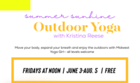 12:00 - 1:00 pm 7/15/2022Join us on Friday, July 15 at 12:00 for summer sunshine outdoor yoga with Kristina Reese.