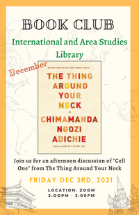 2:00 - 3:00 pm 12/3/2021Join the International and Area Studies Library for a monthly discussion of international novels and short stories selected by area specialist librarians! For the month of December, the club will be discussing "Cell One" by Nigerian writer Chimamanda Ngozi Adichie.