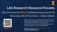 12:00 - 1:00 pm 2/5/20251064 Lincoln HallWhat is technology transfer? What is the role of the Office of Technology Management in this process at UIUC? Join LAS Office of Research and OTM for focused session on opportunities and policies guiding technology transfer and intellectual property at the University of Illinois.
