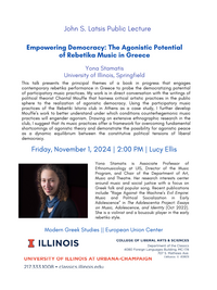1:30 - 2:30 pm 11/6/2024Room 200, International Studies Building (910 S. Fifth, Champaign) -