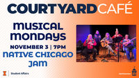 7:00 pm 11/3/2025Courtyard, Illini Union (1401 W. Green Street, Urbana)In celebration of Native American Heritage Month, the Illini Union Board, Native American House (NAH), and American Indian Association of Illinois welcome everyone to enjoy a variety of musical genres performed by an ensemble of Native performers. In addition to tabling at this event, the NAH will have food for attendees. Food is first-come, first-served.